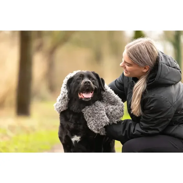 Deze heerlijk zachte microvezel handdoek zuigt water en vuil op als een spons. De uiteinden zijn voorzien van zakken waar je je handen in kunt steken, zodat je eenvoudig je hond droog kunt wrijven, zonder zelf nat of vies te worden. De Royal Dry handdoek is extreem duurzaam, super zacht en neemt geen geurtjes op. Ook is de handdoek antibacterieel en droogt erg snel.